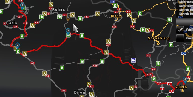 1 Mola yeri var. Salı Günü UTC+3 16:30'da Başlayacak. Pariste; TradeAux bu alandan kalkıp Zürichte Tree-Et alanında konvoyumuz sona erecek.