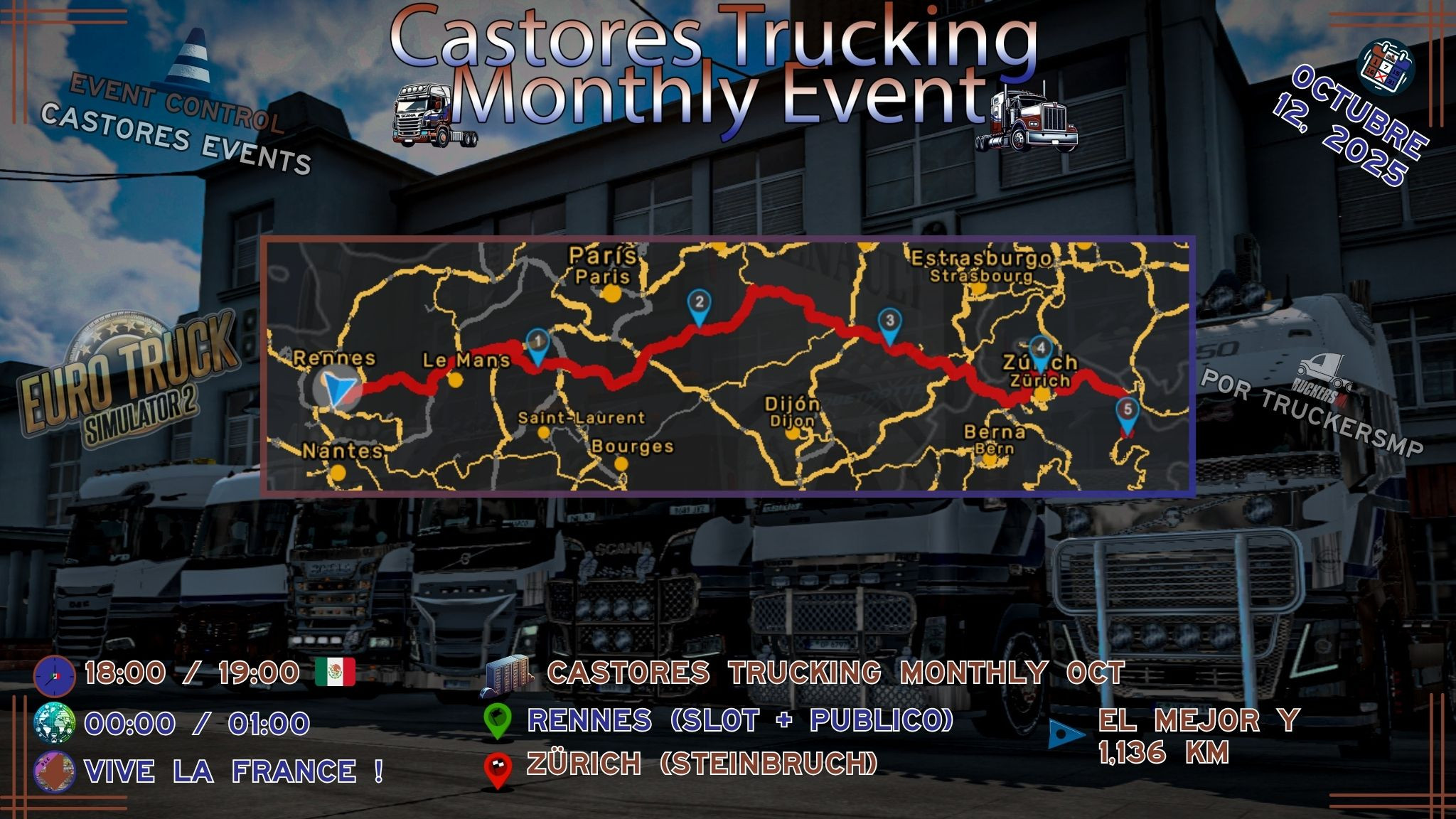 ! CASTORES TRUCKING; te invitan a su Monthly Event¡Hola a todos! Castores Trucking se complace en invitarte a nuestro Monthly Event de Octubre, un emocionante recorrido por las carreteras europeas en Euro Truck Simulator 2.