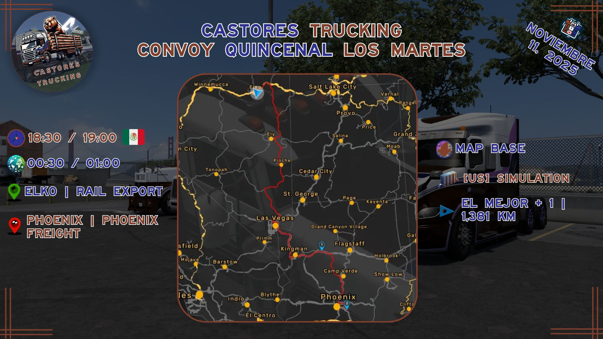 ! CASTORES TRUCKING; te invitan al Convoy Quincenal¡Hola a todos! Nos complace invitarlos a nuestro Convoy Quincenal de Castores Trucking. Este evento será organizado por Castores Trucking, y recorreremos juntos las impresionantes carreteras americanas en TruckersMP