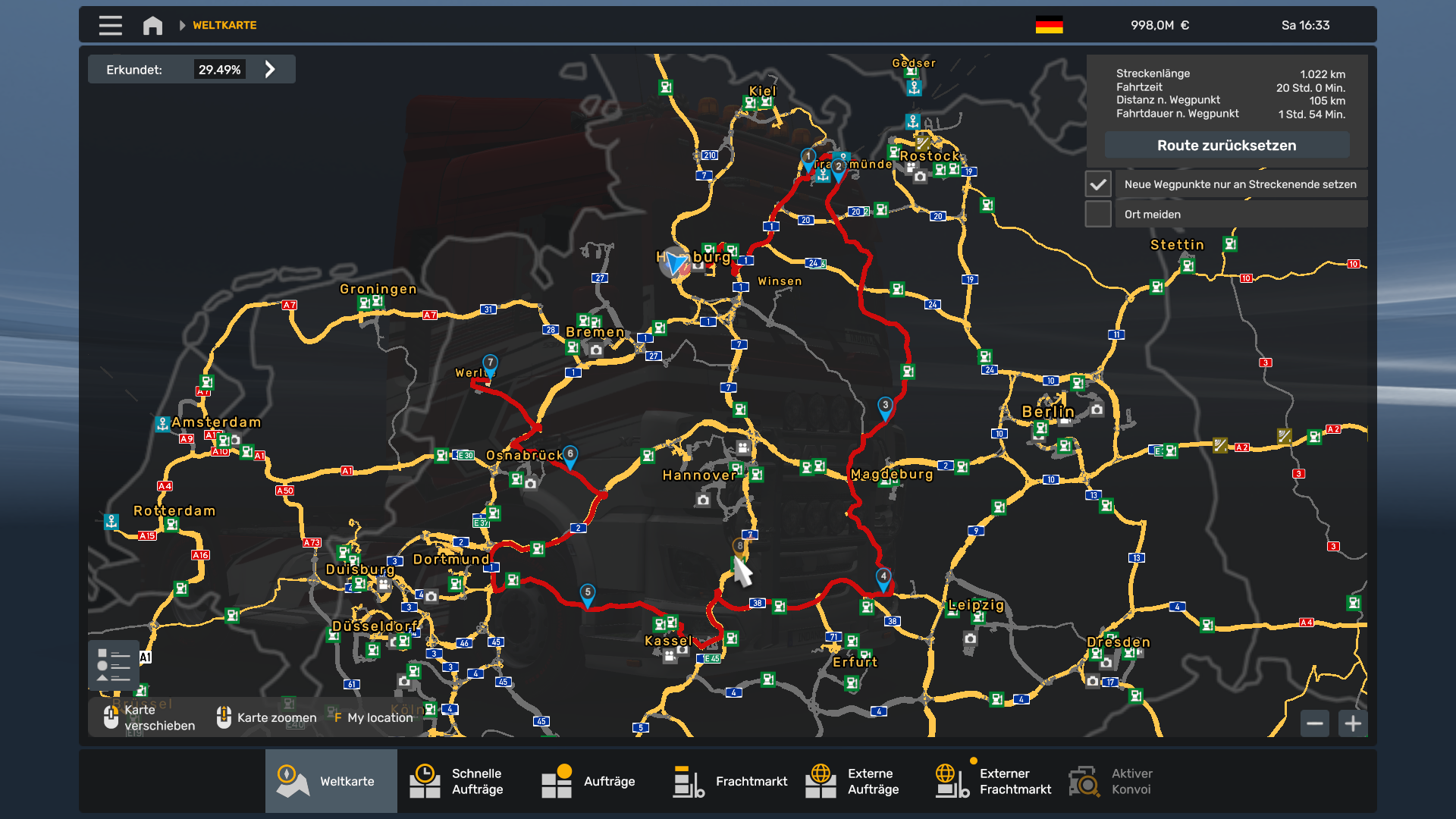 Start: Hamburg Container Port, RT-Log, Parkplatz Pause: Keine Pause Ziel: Werlte Krone Werke
