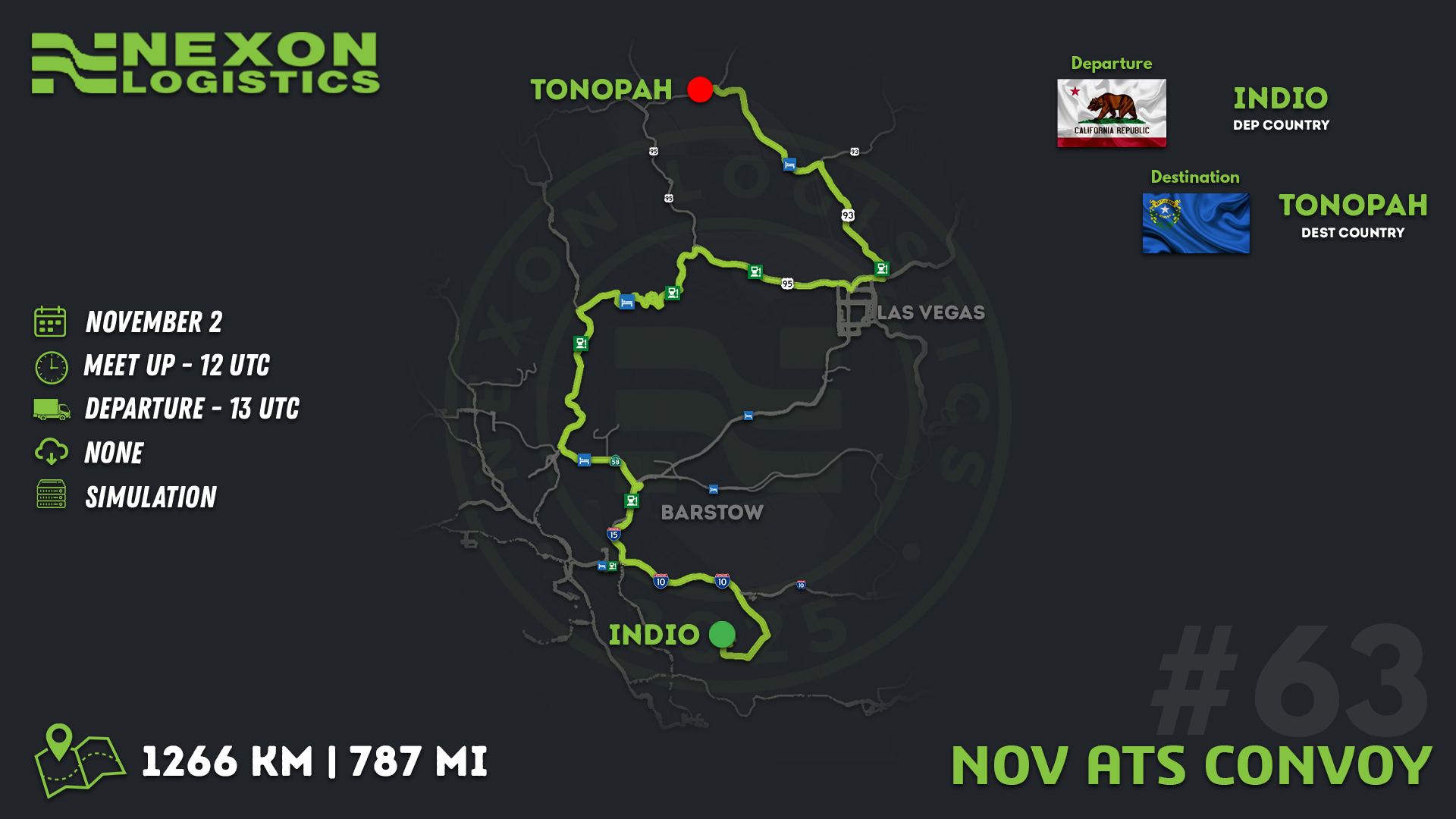 We are delighted to invite you to our Nexon Logistics November ATS Convoy #63, and we would be privileged to have your presence at this special event. Your participation means a lot, and we encourage you to mark your attendance so we can ensure the smoothest and most memorable convoy experience.