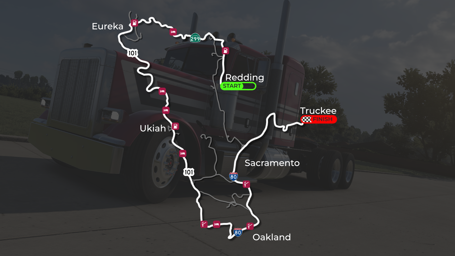 Starting in the city of Redding, we will be taking the scenic route through California, navigating multiple Real Operations along the way towards the city of Truckee, which is our end destination.