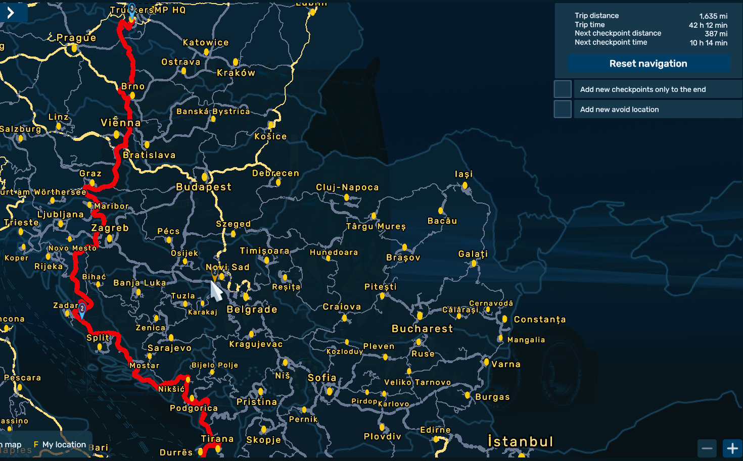 Provided with our CC team, we will ensure you a high quality convoy and we hope you will enjoy your drive! The convoy is estimated to last 02 Hrs. 23 minutes and the length is 2,631 km |1,635 miles.