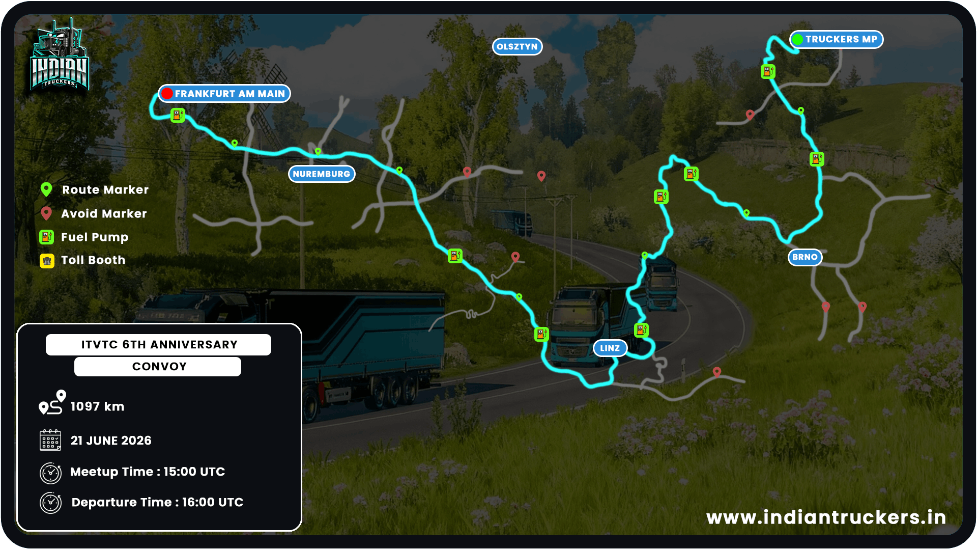 Hello VTC Owners / members. Hope you are doing well. We are going to conduct our 6 Anniversary Conovy on 21st June 2026. We would like to request you to participate in the event and trucking together. Kindly have a glance at all the details provided below, for any queries our event team and support team is always ready to help you. We will be awaiting your presence. See ya on the road
