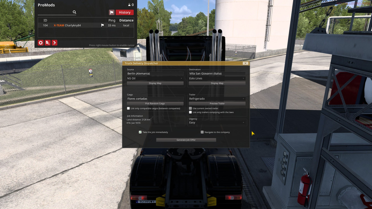 La Carga será Flores Cortadas, haremos la carga con el Dispatch de TruckersMP