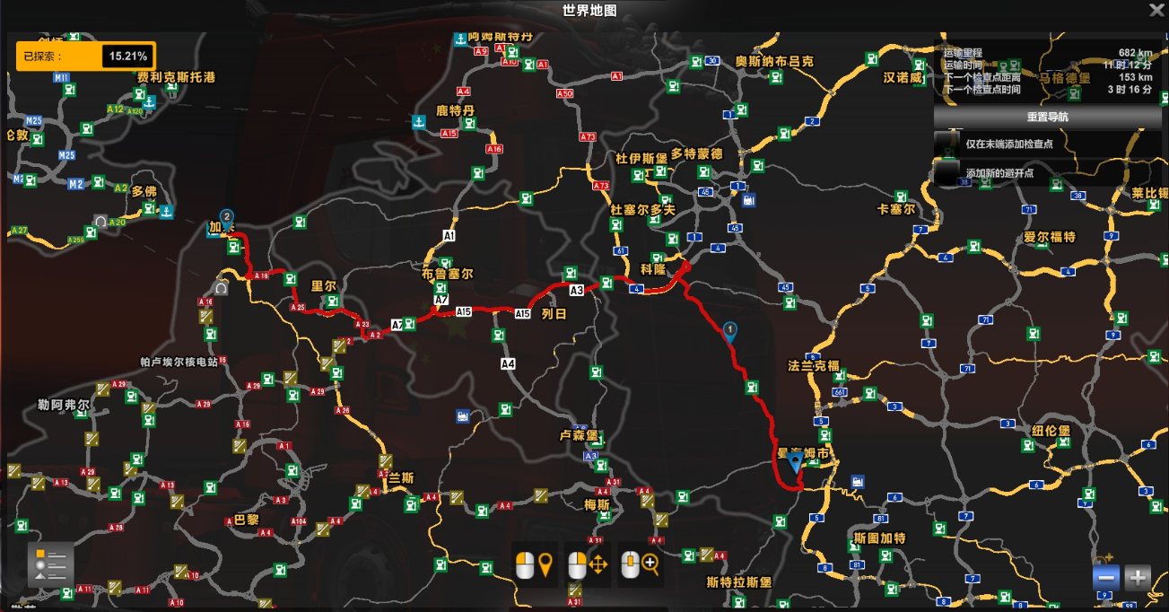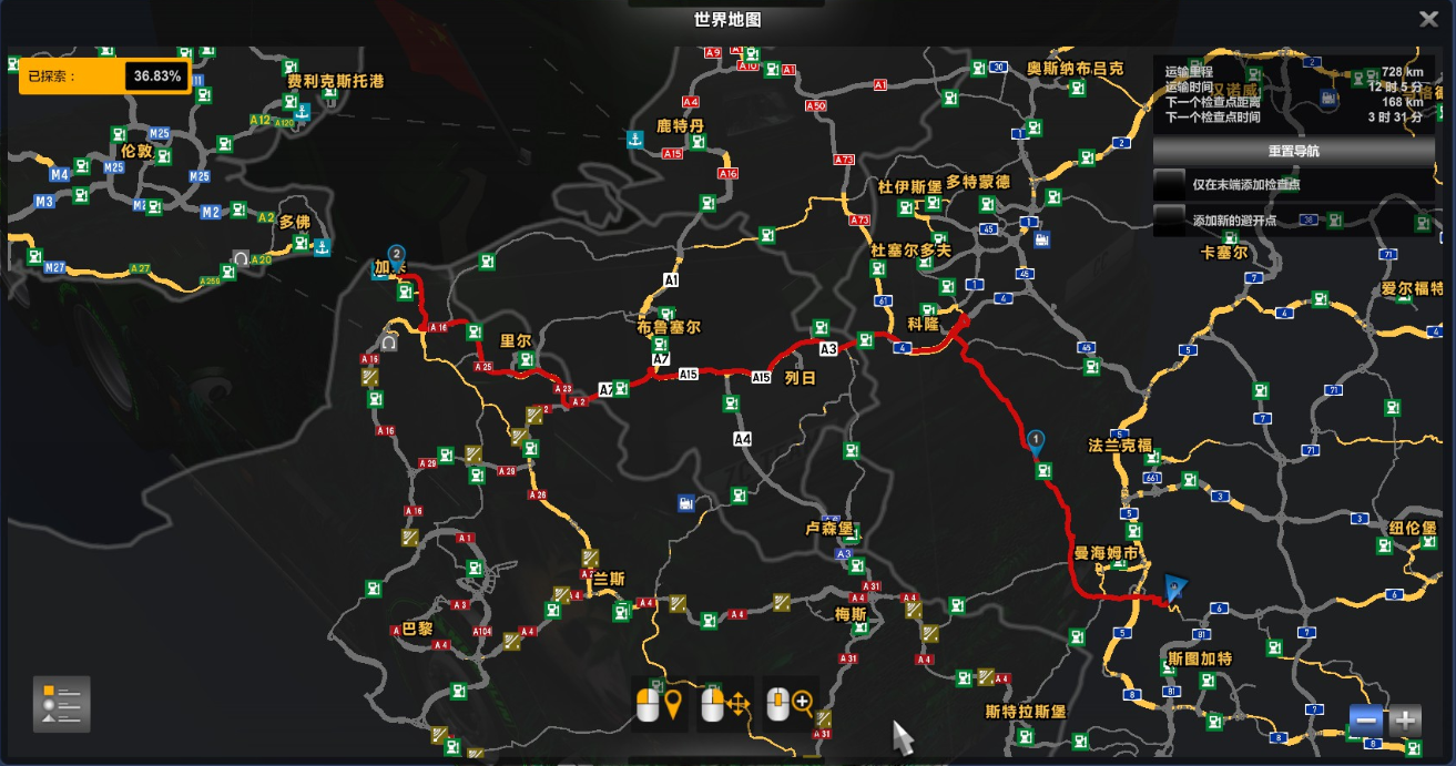 活动路线: A:曼海姆市矿场-加来港口(728km) B线曼海姆市市区-加来港口(682km)