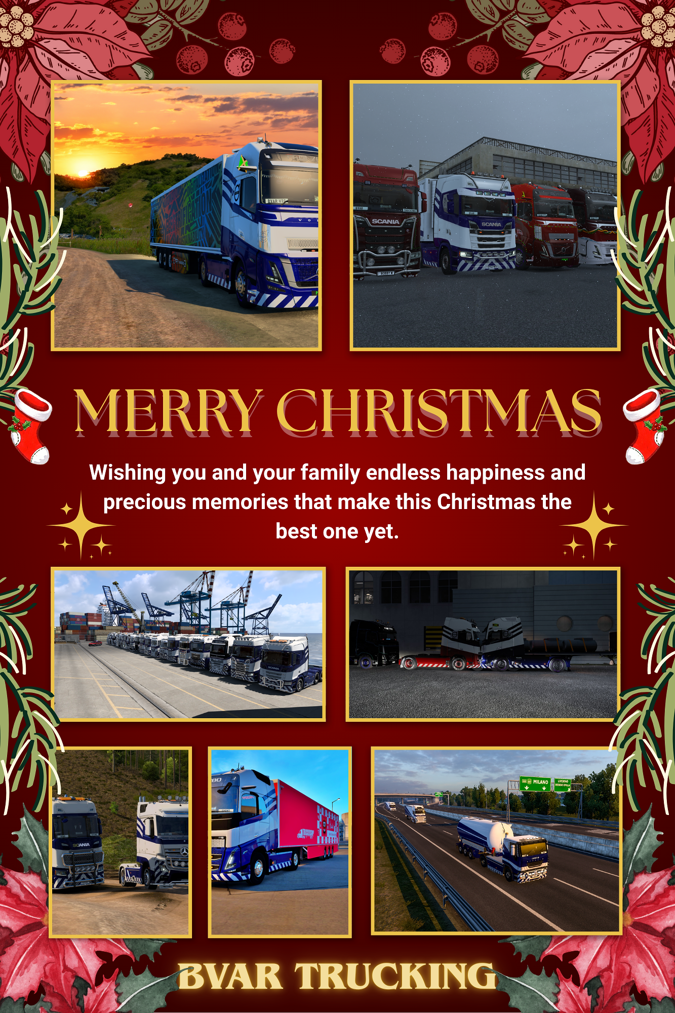 Merry Christmas from BVAR Trucking! We hope your day is as bright and cheerful as the twinkling lights that guide our way, as cozy and comforting as the warmth of a crackling fire after a long journey, and as sweet and delightful as the Christmas treats that fuel our adventures. May this Christmas bring you the joy of connecting with loved ones, the peace of a well-deserved rest, and the anticipation of exciting journeys yet to come. We hope you create wonderful memories that will be treasured long after the holidays are over. Happy Holidays, and here's to a New Year filled with safe travels and unforgettable experiences!